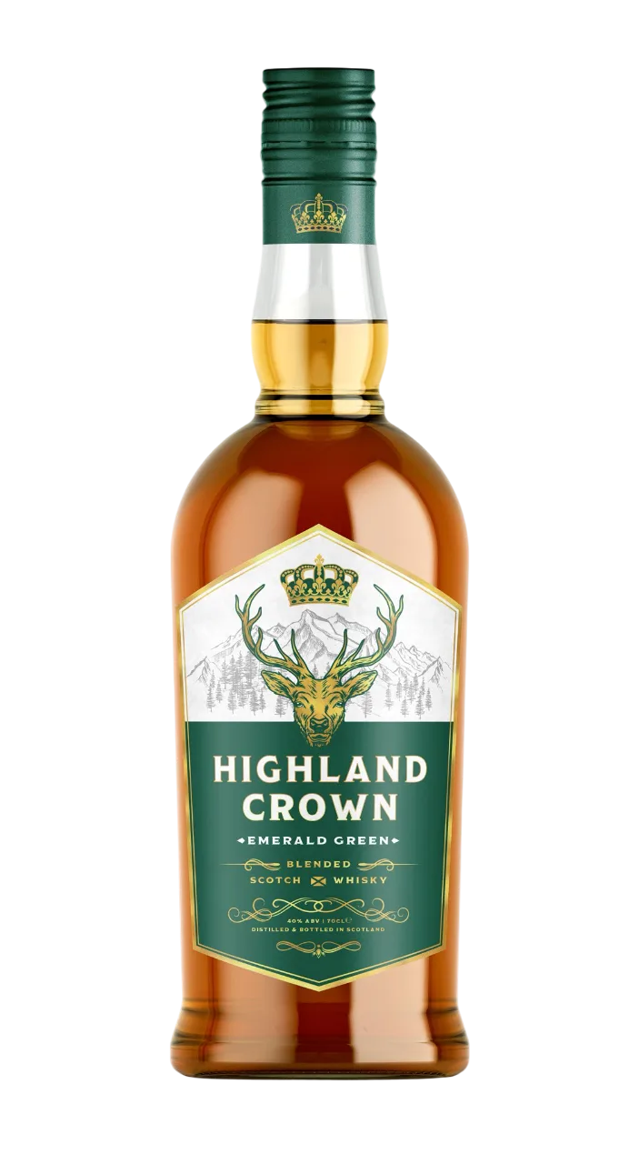 Crafted in the heart of Scotland, Highland Crown Emerald Green is a smooth, elegant blended Scotch whisky that captures the spirit of tradition and refinement. On the nose, it opens with fresh green apple, pear, and soft vanilla. The palate is rich with creamy toffee, malted barley, and a gentle hint of cinnamon, finishing long and warm with notes of oak, dried fruit, and a touch of heather smoke.